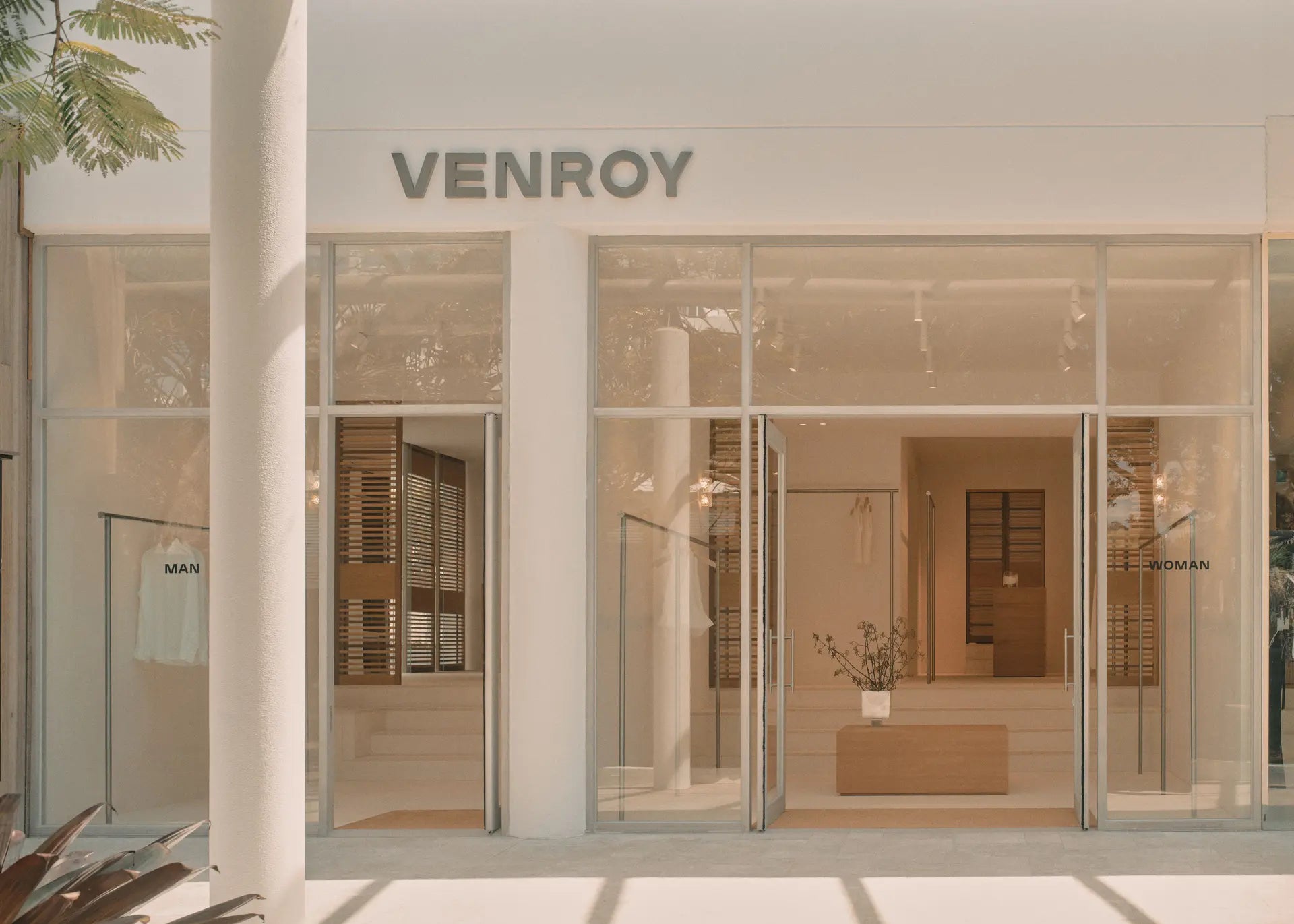 Venroy Noosa seamlessly combines the laidback design strategy of a classic Queenslander floor plan and the connected spaces of Roman Otium villas. This is also expressed in the use of beautiful Australian hardwood Pine and Eucalyptus, together with Limestone and Beige Travertine. With adjoining premises in two independent womens and mens stores, the site required a complete interior decommission and new facade.