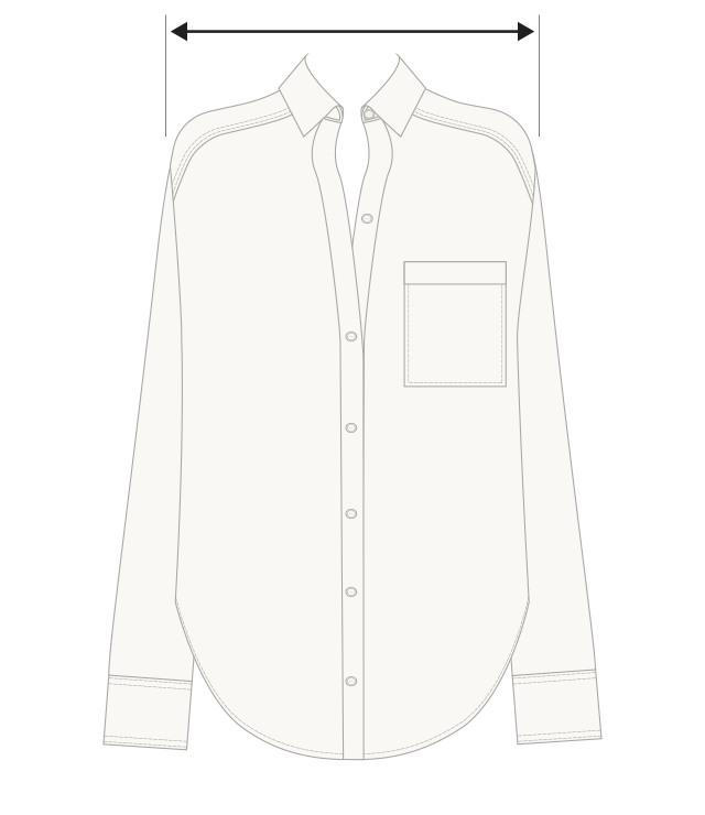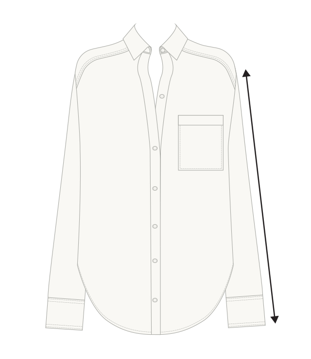 It may be helpful to compare these product measurements to a similar garment you already own. To do this, place the garment on a flat surface and take all measurements from the outside